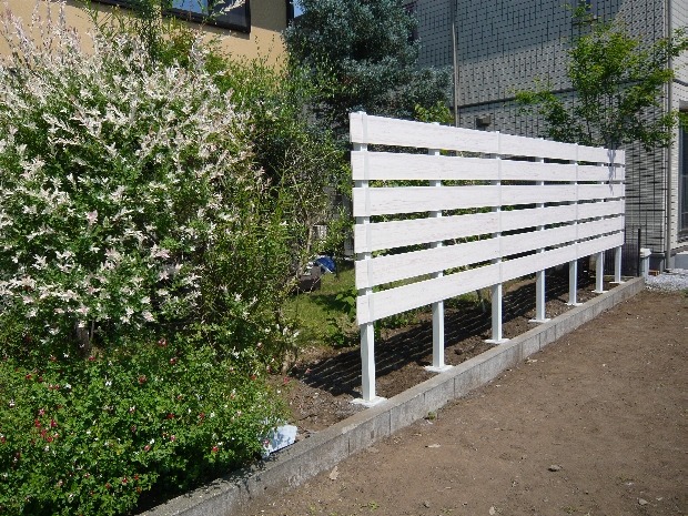 目隠しにホワイトウッドフェンス。こんな眺めの庭にしてみませんか?